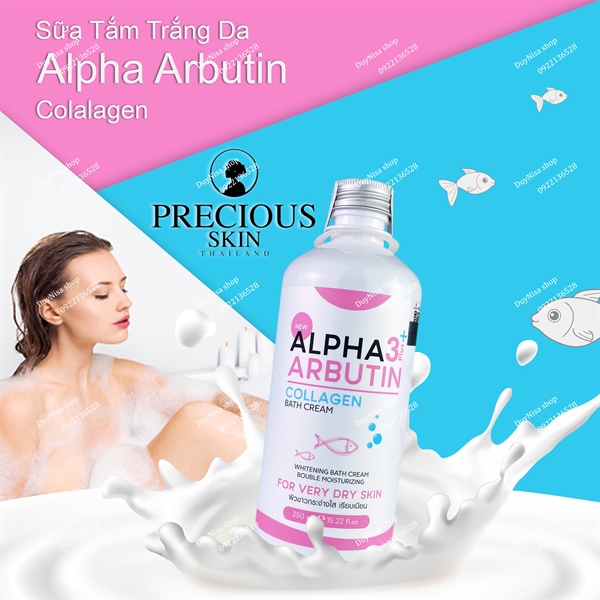 - Sữa tắm trắng da Alpha Arbutin 3 Plus + Collagen Bath Cream giúp loại bỏ sạch sâu những tế bào chết và bụi bẩn trên da, phục hồi lại sức sống cho làn da sau một ngày dài.